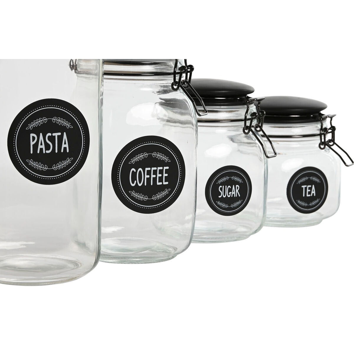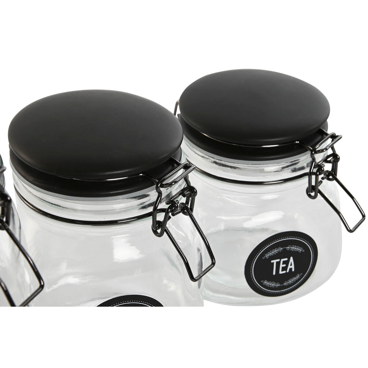 Set van 4 Potjes Home ESPRIT Zwart Metaal Kristal 2 L 11,4 x 11,4 x 26,7 cm